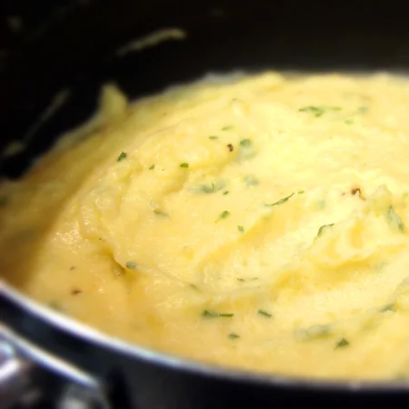 Add the remaining olive oil. Mix well to make the potatoes creamy.